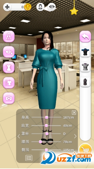 进入虚拟搭配界面,可以在界面的右侧选择各种各样的服装,左侧可以选择局部部位进行装扮,通过虚拟人物搭配各种服装,选择最适合自己的搭配方式。