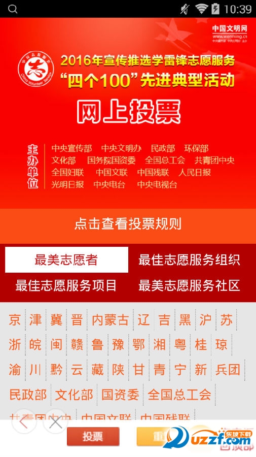 中国文明网官方最近正在举行2016年宣传推选学雷锋志愿服务的四个100投票活动,用户只要下载了文明中国投票客户端就能快速为自己喜欢的志愿者投上宝贵的一票,东坡这附上文明中国最新安卓客户端,欢迎免费下载!