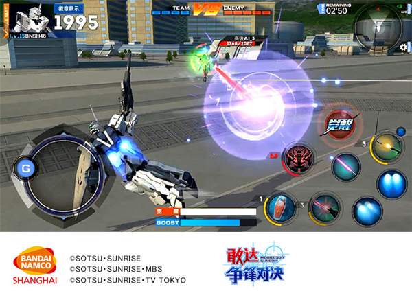 敢达争锋对决收录有十余部敢达系列的机体,忠实再现了宏大世界观中多样的武器设定。表现在游戏中,更是形成了丰富多彩的射击技能。不同的机体设置有不同的射击型武器,按压屏幕中的「普通射击键」便能发射主射击武器的攻击。建议事先了解并多多熟悉所拥有机体的射击性能,能够对完成未来的对战与任务有着莫大的帮助。