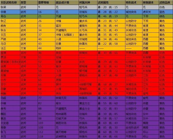 《攻城掠地》目前版本武将大全(如下):