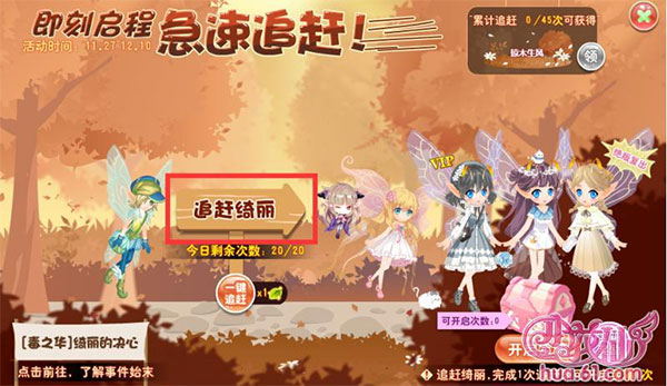 同时小花仙们也可以点击下方“一键追赶”标识,直接完成小游戏;