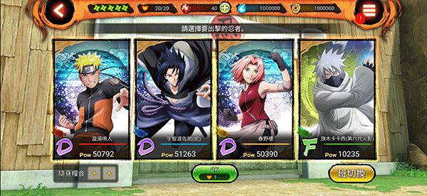 3、选择出战的忍者们;