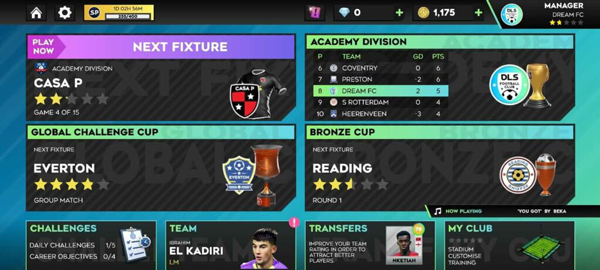 点击职业菜单后,玩家可以通过点击“下一场比赛”继续玩他们的下一场赛程。玩家还可以查看他们俱乐部在他们的学院赛、全球挑战杯和分区杯中的排名/排名,以及他们与每个分区和杯赛有关的下一场比赛。
