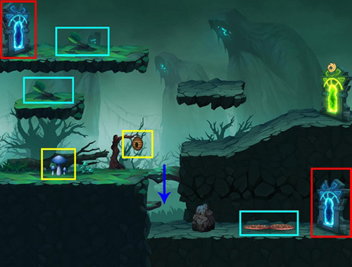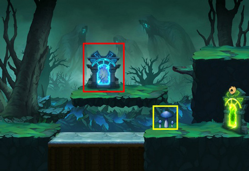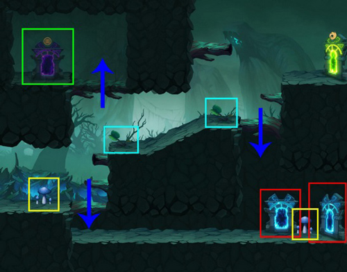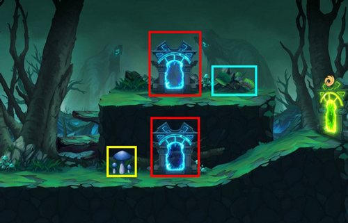 ×¢ÒâÊÂÏ×óÉÏ·½¸ÅÂʳöÏÖ×ÏÃÅ£¬×óÓÒÁ½±ß¸÷ÓÐ1¸ö¶¾Ä¢¹½£¬Öв¿ÓÐ2¿Ã²¶Ó¬²Ý¡£½øÈëÏ·½Òþ²Ø³¡¾°ºó»á³öÏÖ1Ö»ÀÇÆïÊ¿