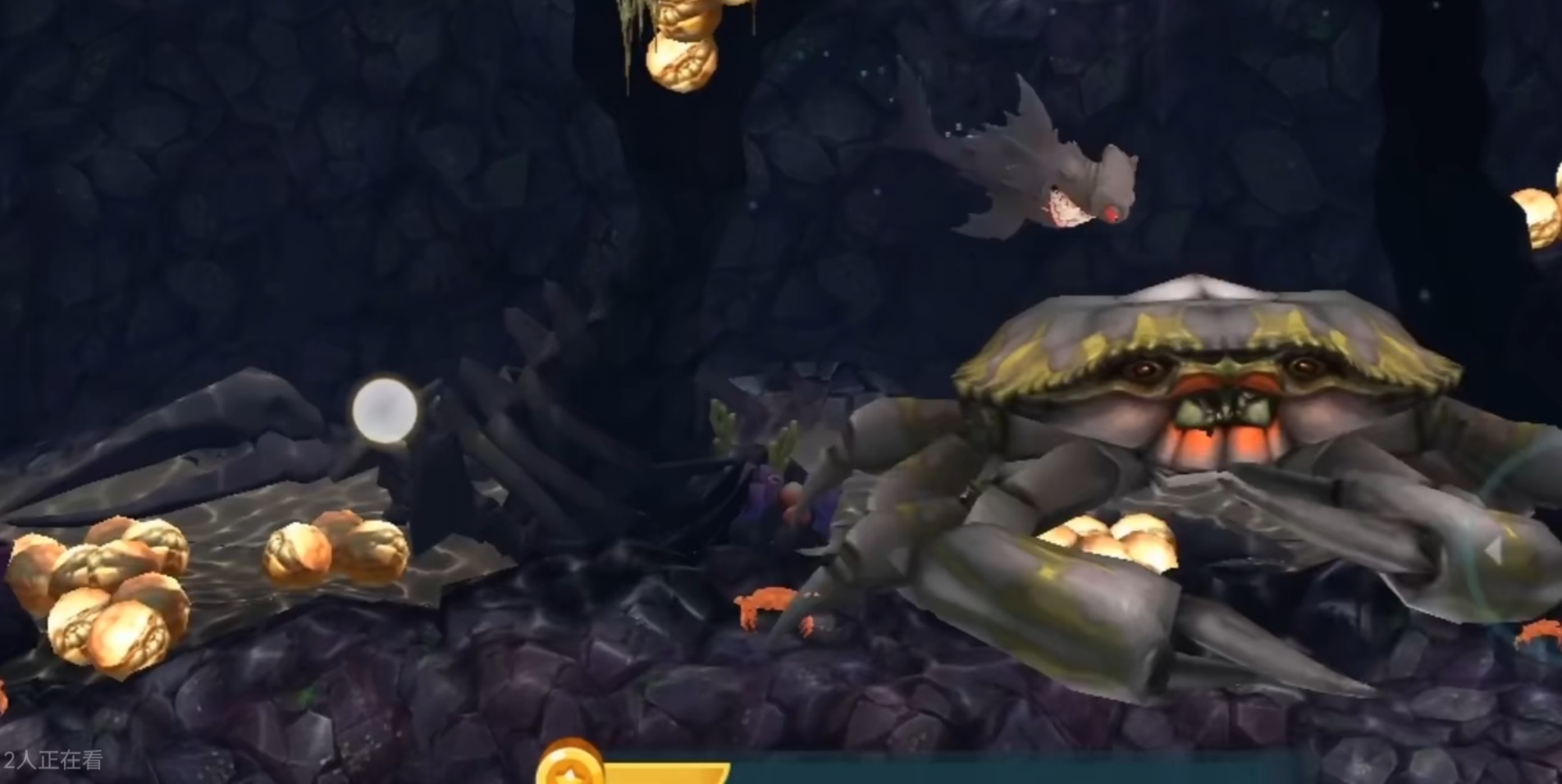 海底还有个螃蟹老大每次玩腻了都会去挑战一下,来势汹汹的螃蟹每次都把我打哭了不过感觉很好,我觉得等我好久解锁更厉害的鲨鱼应该就可以把它秒吃了