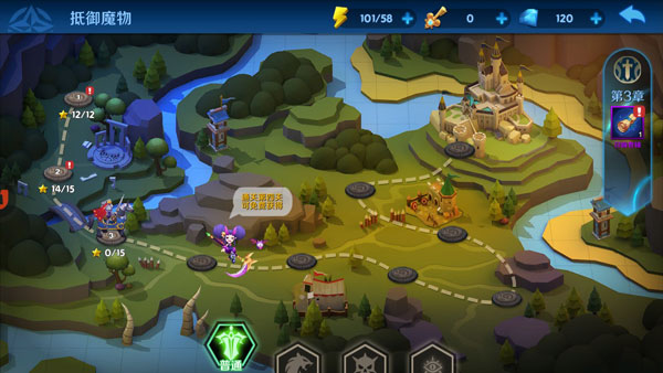 目前共有三十个关卡,每个关卡有4-10个不等的小关卡,关卡怪物难度也会慢慢增强,别以为通过了三十个关卡就算通关游戏,此外每个关卡还有精英、噩梦、炼狱3个难度,层层递进,让你欲罢不能。每个关卡都有不同的路线,每条线路的怪物均有不同,需要玩家合理的放置英雄和使用英雄技能才能通过关卡,随着难度的增加,不同难度还会有不同的限制,如不能使用某个部落英雄,某些英雄禁止使用等等。