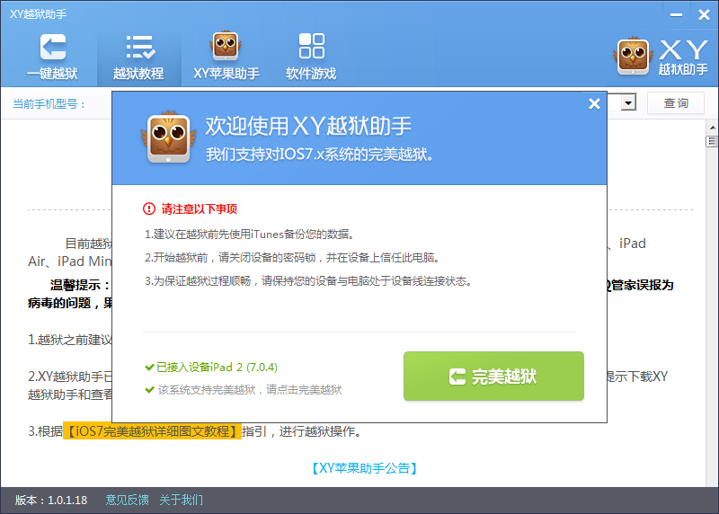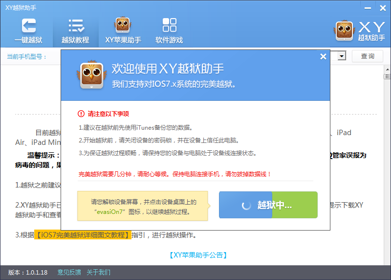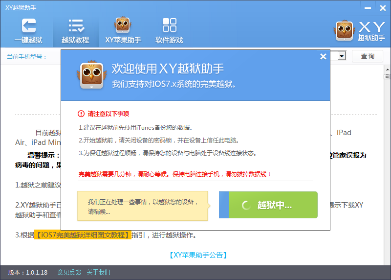 XY越狱助手越狱提示