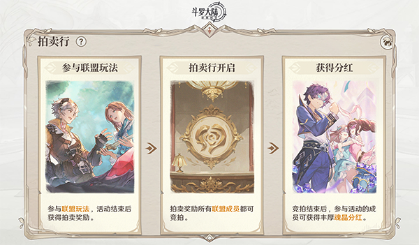 魂兽追猎是BOSS讨伐向玩法(周一、周三晚8点开开放),在玩法内会刷新出多个魂兽BOSS,在魂兽被击败后所有攻击魂兽的联盟可以获得一份拍卖奖励。拍卖奖励会基于魂兽品质、联盟输出伤害进行分配,联盟在对应魂兽挑战中输出越高,奖励越丰厚(所以每个联盟要合理分配战力)。