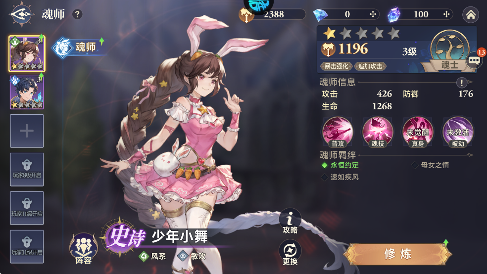 综合试炼用最强的队伍参加即可,部分关卡会有魂师人数的要求,一般来说我们前期只要极限养成某个核心,再搭配一定的辅助位,就能完成关卡的推进。在进行五系挑战时就需要我们提前储备五系魂师,作为“备胎”一般来说不用去主动提升星级,只要将魂师等级、魂环、魂骨等常规养成提升上去(魂环、魂骨可以捡捡垃圾,也可以挑战的时候将主力队的卸下来用,实际上不会占用很多资源),就都挺能打的。