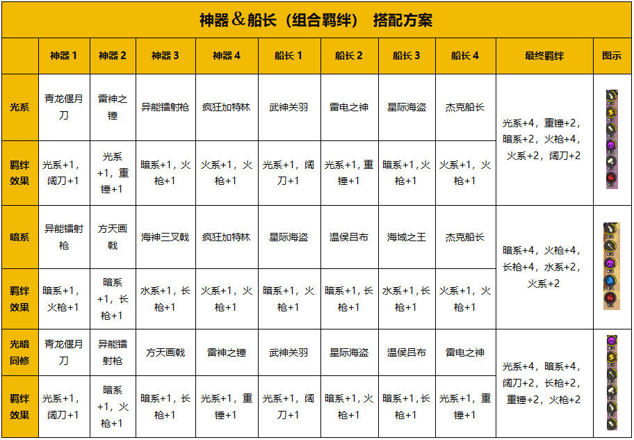羁绊:是在对局生效,所以需要在对局之前调整好常用羁绊:光系,暗系,长枪,火枪,水系,火系