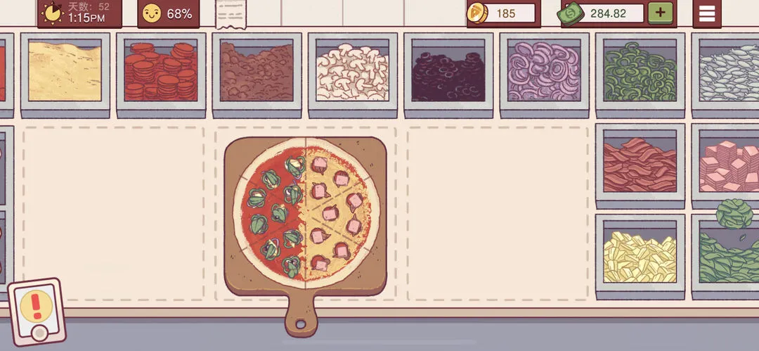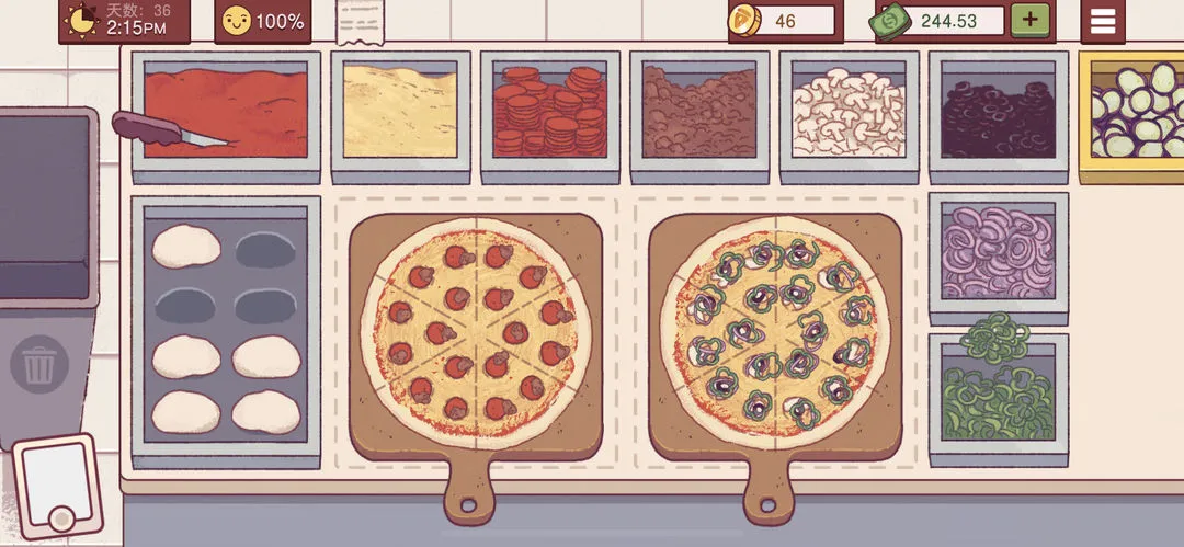 可口的披萨是一款模拟经营类的游戏,玩家可以制作各种披萨来满足顾客的需求。游戏中有许多不同的披萨配方,玩家需要根据顾客的需求和口味来选择合适的食材进行制作。同时,游戏中的顾客也会给出各种挑战性的要求,如制作出符合要求的披萨形状、使用特定的食材等。