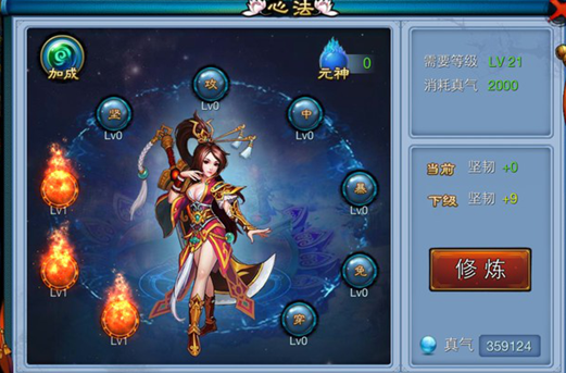 乱仙斗心法系统一共有9大心法:攻击(攻)、命中(中)、暴击(暴)、免伤(免)、穿透(穿)、气血(血)、防御(防)、闪避(闪)、坚韧(坚),按顺序修炼心法,能全面增加战斗属性,大幅度提升自身战斗力!
