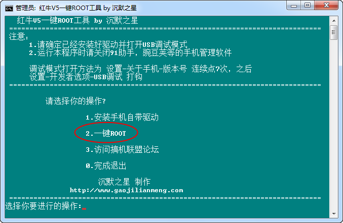 1、使用红牛v5一键root工具前请先关闭、退出一切手机助手软件。