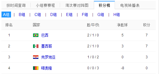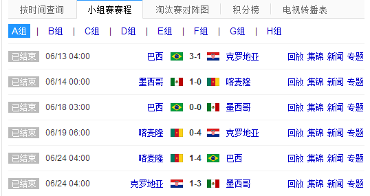 2014世界杯赛程表