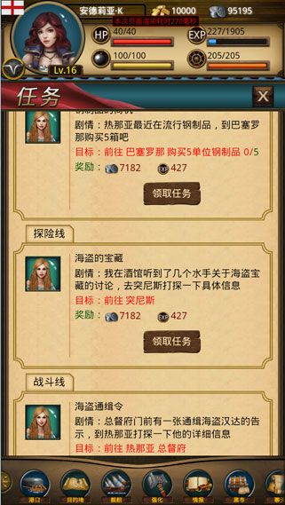 到达11级后,点击导航栏好友按钮,会出现好友功能的引导。在添加好友界面扔出漂流瓶就可以结交远方的伙伴。有了好友后我们可以与他们分享情报。玩家到达15级强化功能解锁,点击导航栏强化按钮会开启强化的引导。每个船首像最多能强化到10级,成功的概率会越来越低,不过我们通过放入强化宝石来增加成功率。玩家到达15级时,还会解锁每日任务。每日任务每天可完成10次,都做完后可购买委托书页或等到0点以后才能再继续做。另外,任务的星等越高的,奖励也越好。