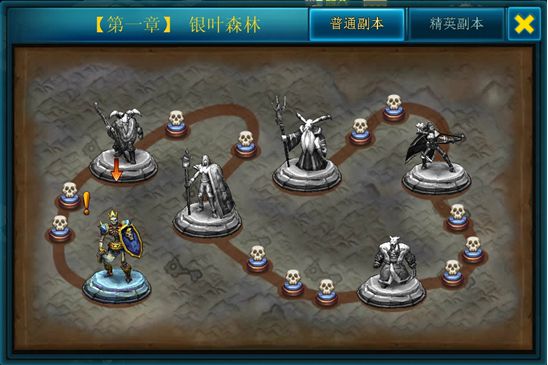 骷髅图标是沿途的小关卡,丘陵形状的是Boss所在的关卡。小关卡只能通关1次,Boss关卡可以重复通关。