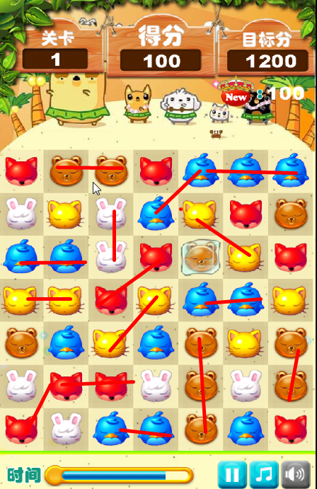 2、进入游戏后,只需按要求用手指连着相同的萌宠头像就可以获取积分了。