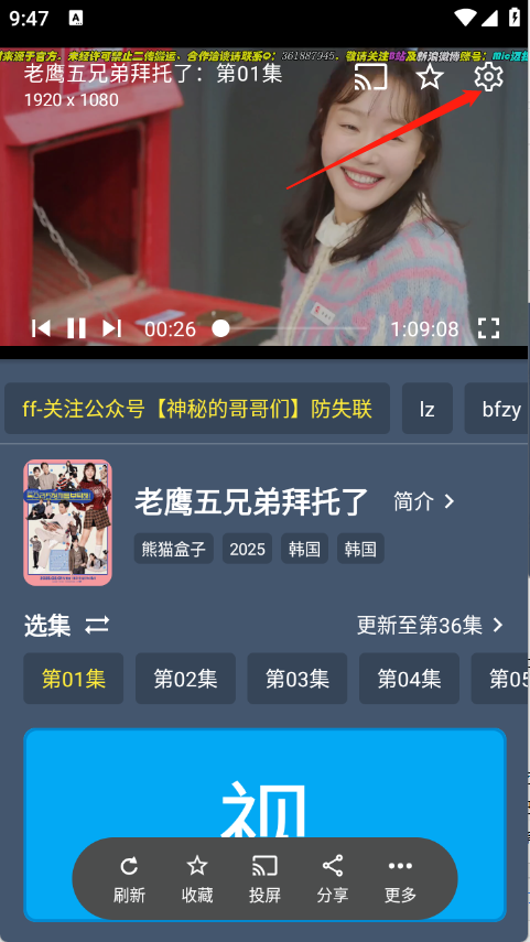 1、用户点开想看的影视进入播放页面,点击右上角的设置。