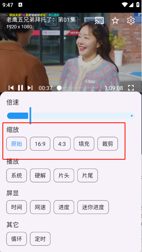 2、选择画面播放比例即可。