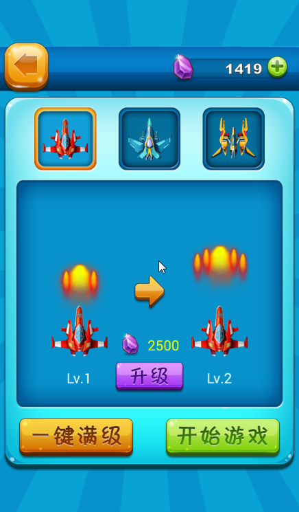 玩家可以给自己的战斗机升级,让自己的战斗机战力上升。