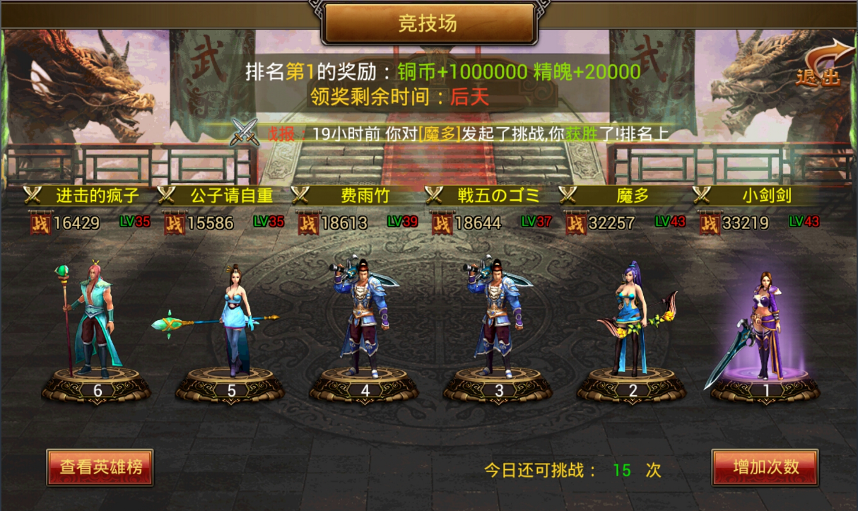 1. 初入竞技场,可别急着就开始战斗,首先提高自己的实力,在实力足够的情况下,再去战斗,获取连胜,可以获得更多的奖励;在注重打连胜的同时,也要同时考虑排名的问题,在实力足够情况下,可每次挑战排在可挑战方最前面那位,争取排名最大化。