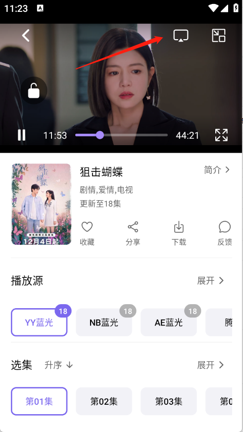 2、如果显示当前线路不支持投屏,可以选择切换播放源。