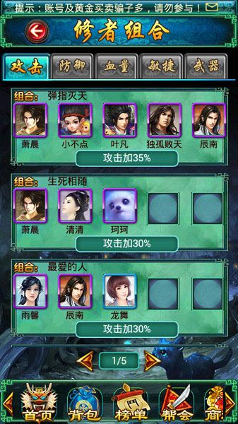 在所有的修者组合中,最吸引眼球也是最拉风的当然是主角梦之队,由辰东多部小说的主角组成——叶凡、萧晨、辰南、独孤败天、小不点——这个华丽的小队号称“弹指灭天”,能够提升多达35%的攻击,五人中的三人更是血牛级的超五星修者,几乎没有什么人能阻挡他们。有了这个队伍称霸全服也不是梦了,当然意料之内的是想要凑出这个组合非常艰难。