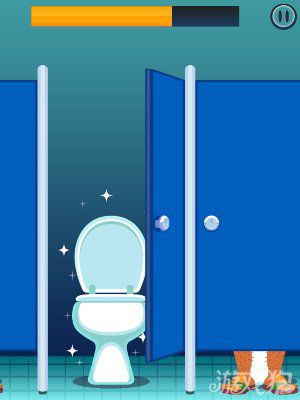 此关的要点就是看那个厕所间没人,用力的将无人的没踹开,之后就会有一个闪闪发亮的厕所出现在你面前。