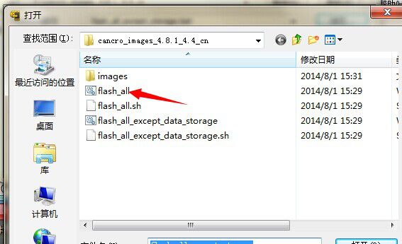 然后找到flash_all这个,选择确定,就可以了。大家在试试 刷机是否成功。