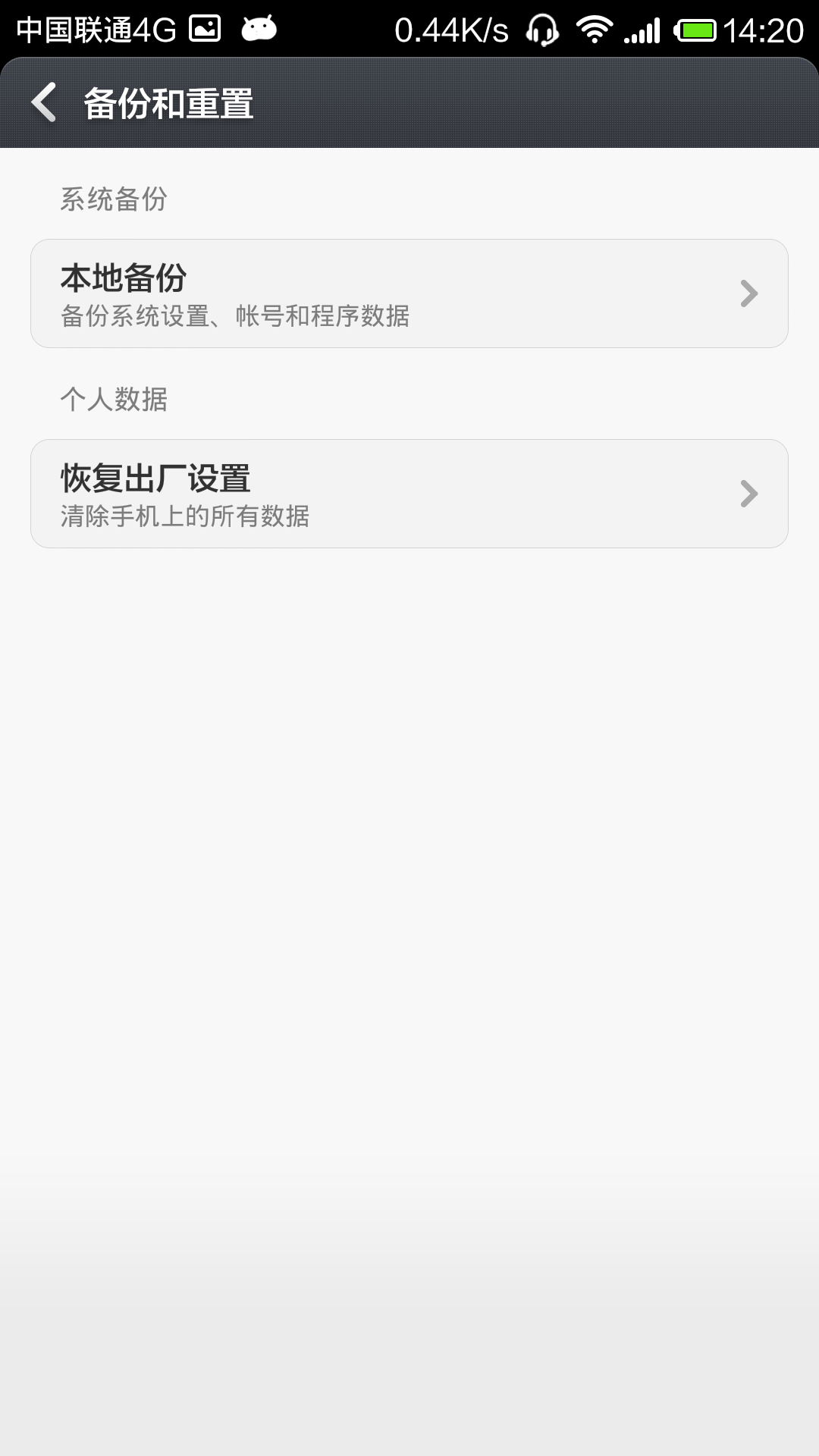另外我的小米4上没有发现备份还原的图标。大家 的有没有?