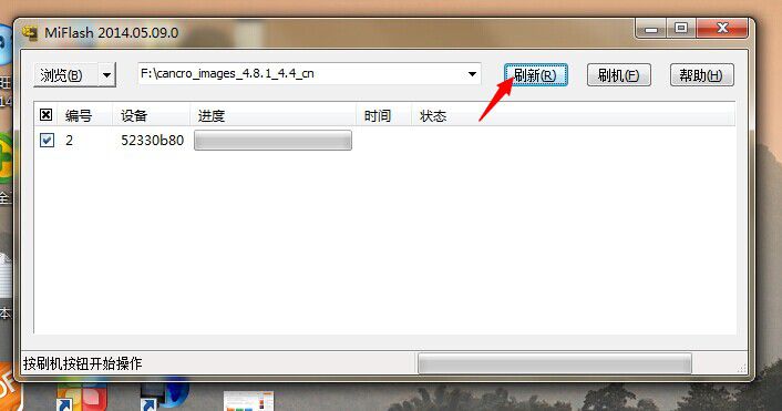 在这里我们选择刚才的线刷包的解压路径复制到里面。然后选择刷新,刷机工具已经识别出来设备了,证明手机已经成功连接到刷机工具。