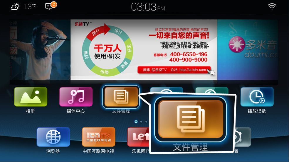 乐视云盘TV版是乐视网官方出品的一款免费云存储服务产品,无限储存空间。在线播放视频清晰流畅,网络良好的情况下,从点开视频到播放最多2秒时间便可播放超清视频。独具视频播放记录功能,看过什么视频,看到哪全部记录下来。可隐藏私密文件,让文件更加安全。图片浏览除了具备大图浏览、图片旋转的功能,还具备了时间分类、地点显示功能。联通各端产品,一端带动多端。