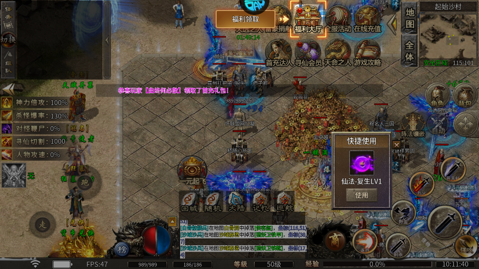 神威地狱:每日3次开放的爬塔玩法,共13层,每层BOSS掉落稀有装备,死亡需从头开始挑战。VIP玩家60级可提前进入,建议战道组合携带“镇魂丹”应对心魔干扰,高层掉落的“雷霆武器”是战法组合核心毕业装。