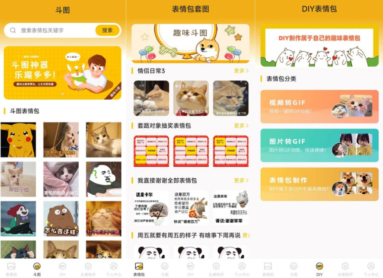 表情包生成软件顾名思义是一款表情包软件,这里自带很多动图表情包,点击直接发送给你的好友聊天,也可以自己DIY制作你需要的表情包,添加文字和动态,恶搞你的好友等等,自制好玩有趣的表情包。