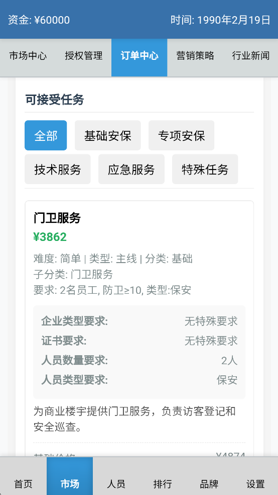 模拟经营一家安保公司,需要玩家达成条件,获得更多证书,达到条件后可以成立跨国公司。