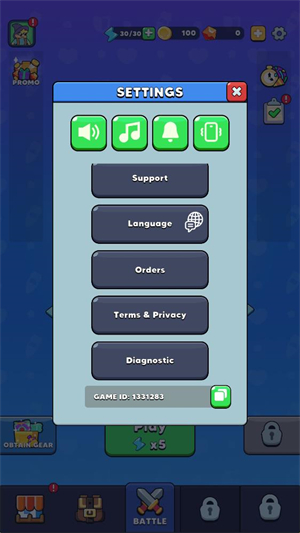 1、进入游戏后点击右上角的齿轮按钮,然后在点击language选项。