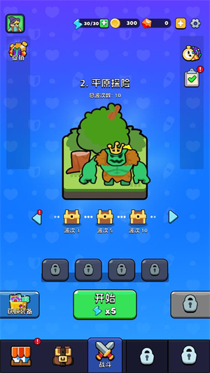 1、进入游戏后在主界面点击开始按钮进行闯关。