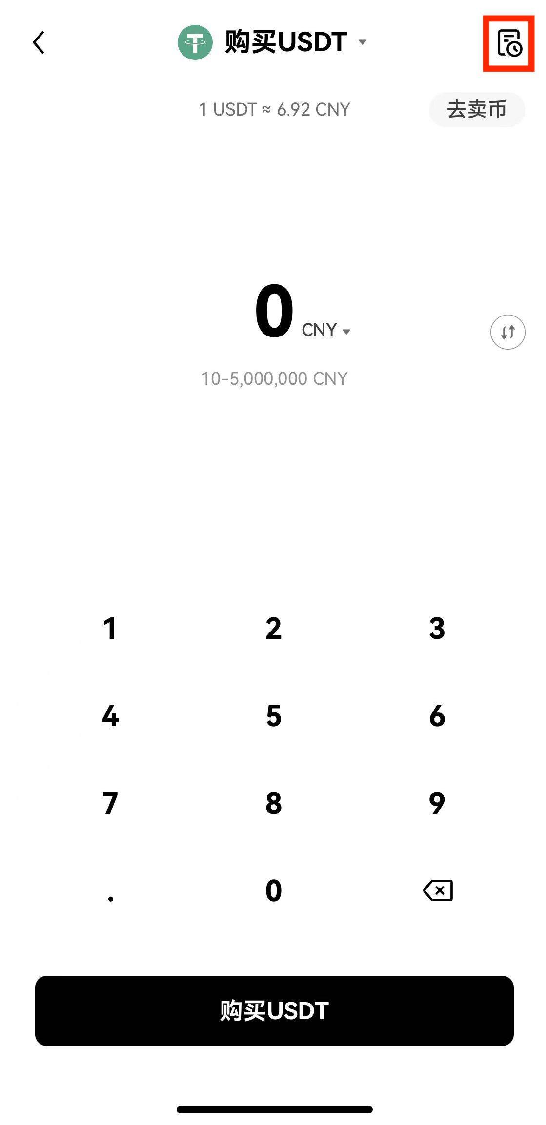 操作路径:点击【快捷买币】—右上角订单图标