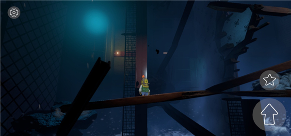 1、玩家进入游戏会有一个剧情,并介绍相应的操作说明,观看完后整个船已经进水了,现在我们需要操控角色脱离前方上方楼层;