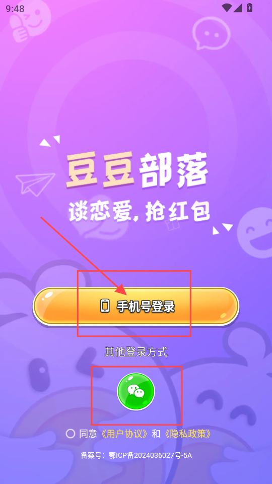 2、首次打开软件需要登录,可以用手机号验证码快捷登录,没注册的号会自动注册,也可以点击下方微信图标登录。