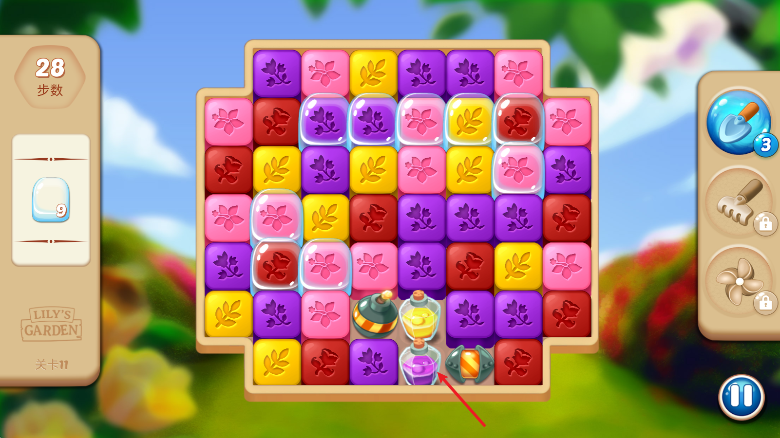 2、关卡中,左侧可以看到关卡的目标和步数限制。