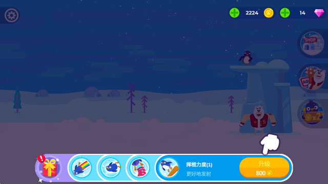 1、进入游戏后,我们需要控制白熊来击打企鹅,第一次点击会让企鹅落下,再次点击即可进行击打!