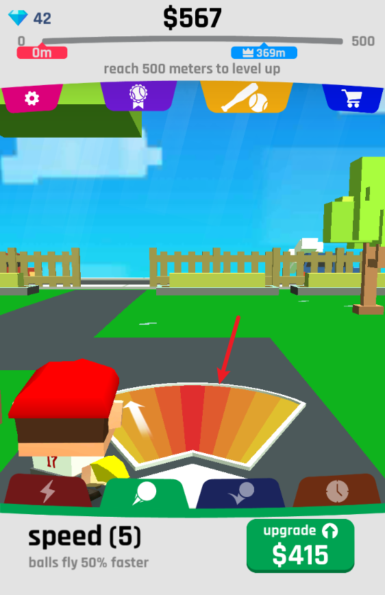 3、养成策略性十足,支持分配金币升级速度、力量、飞行时间等属性,通过合理规划助力击球突破更远距离。