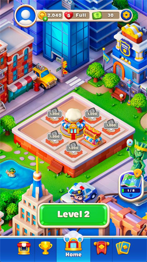 3、核心循环清晰,通过消除玩法获取奖励,解锁更多店铺与建筑,玩法目标明确。