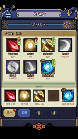 3、当消灭敌人后就可以结束战斗,结束战斗后可以获得经验,提升等级后可以对武学技能进行升级。