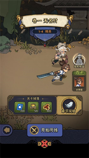 5、点击右侧的江湖按钮可以开始历练关卡,完成历练关卡能获得丰富的养成材料。