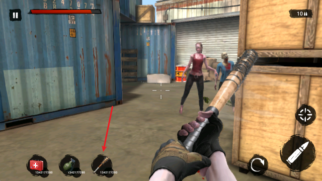 3、敌人靠近的时候可以点击左下角的棍棒道具进行攻击。