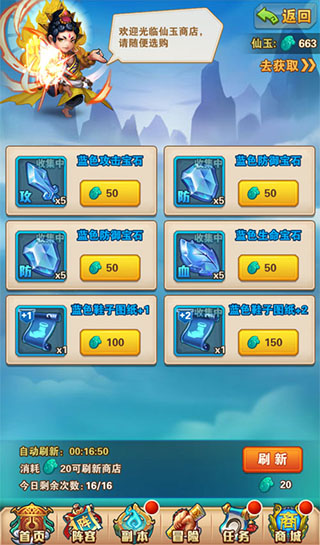 6、每天0点重置次数,基础有2次奖励次数,每日花费元宝可购买4次奖励次数;次数为0时仍然可以进行战斗,但是不再获得奖励