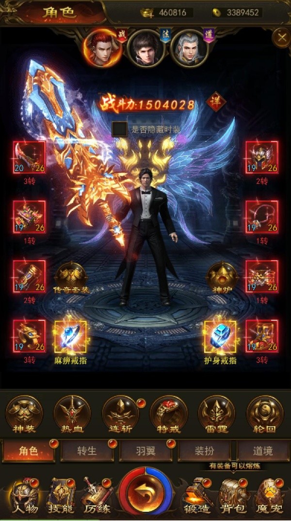 游戏保留传奇标志性的战士、法师、道士三大职业,且为每个职业搭配专属神兵与特色技能,强化职业辨识度:
