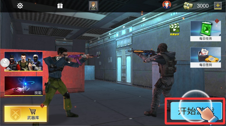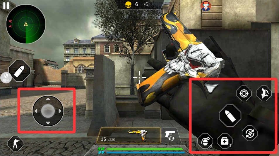 4、左手滑动控制人物走动,右手点瞄准键锁定敌人,看准时机点射击键开火干就完了,多练练枪法。